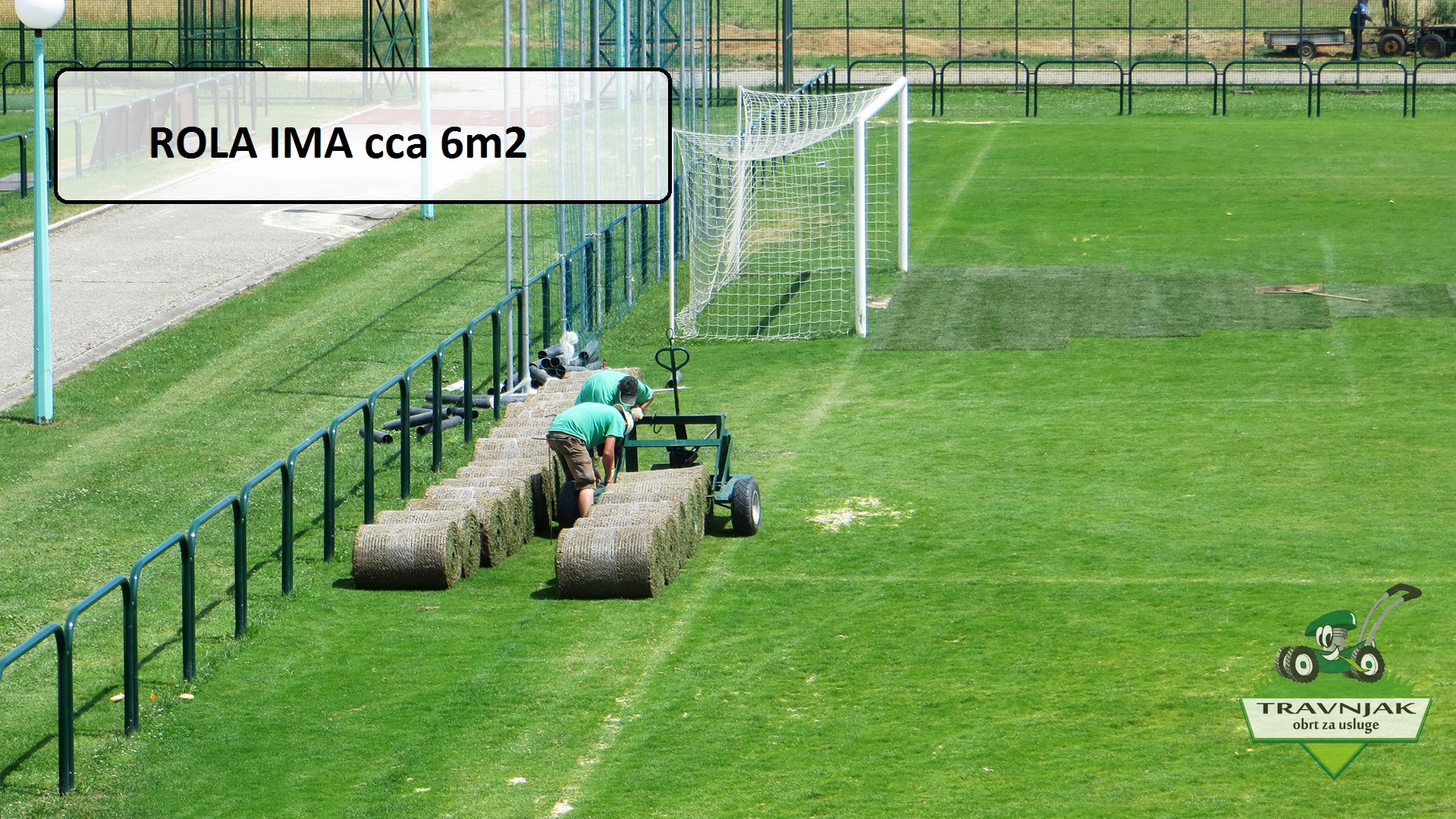 Travni busen za sportske terene isporučuje se u velikim rolama 8,00 x 0,73 m i postavlja strojno, posebnim strojem za polaganje travnih rola. Busen je debljine 3cm